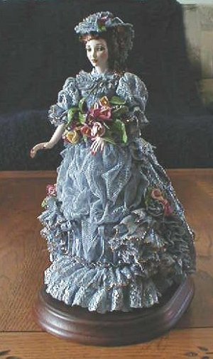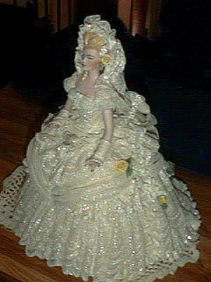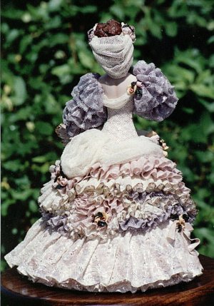I originally began lace draping 10 or so years ago, my sole source of information consisted of a few Vivian Hausle tapes. If you do not have access to a teacher, I highly recommend her teaching tapes/books. She is a guru. They are available from Scott Publishing or you can call Vivian Hausle directly, her phone number is 206/363-2507, she's in Seattle, WA. btw... her phone number is listed on her tapes so I'm sure it's ok to post it here. Other than Vivian's tapes, I'm self-taught. I teach lace draping, have been published a couple times, have been asked to be a contributing artist for one magazine and have won awards. My days of being published ended when they wanted me to mail in the dolls, instead of having layouts done locally. I'm only mentioning this to order to give my qualifications for writing the following.