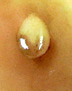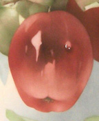 6. The shows a small dew drop on an apple. |