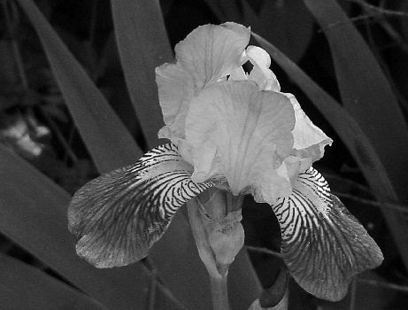 | Below is a reference photo I took of an iris that I used to paint the acrylic painting in the next row. To the right of each photo is the black and white version . It's easy to see in the black and white comparison how I lost the highlights in the painting... |