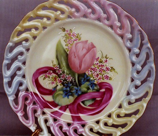 To get the colors you want, pastel, bold and intense, or grayed know your colors before you start. If you are unfamiliar with a color and do not know how it will hold up in a hot fire, test fire on porcelain with the mixing and painting medium you will be using. Fire hot, or at least the temperature you will be firing plate. I can not stress the advantages of test firing colors enough! It sure will prevent grief if colors are not what you are striving for after firing.