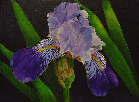 | Below is a reference photo I took of an iris that I used to paint the acrylic painting in the next row. To the right of each photo is the black and white version . It's easy to see in the black and white comparison how I lost the highlights in the painting... |