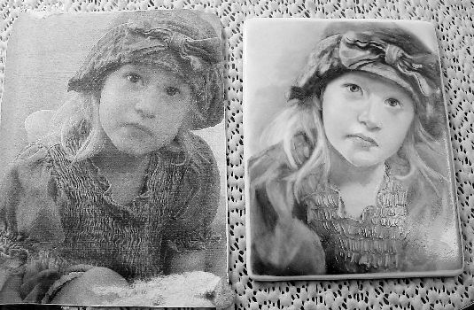 | Below is another comparison... This is a side by side version of a portrait I was working on . The photo is not a good one but in the black and white version , you can see where I need to subdue some of the highlights and build up some darks... |