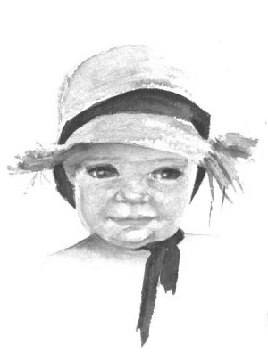 This is a portrait of a ‘little cutie’; I saw her at the beach and just could not resist taking a photo (my camera goes everywhere with me). She could be anybody’s child or grandchild. The tattered straw hat, squinting blue eyes and smile of self-content made an ingredient for a portrait subject. The technique applied is loose and unrestricted.