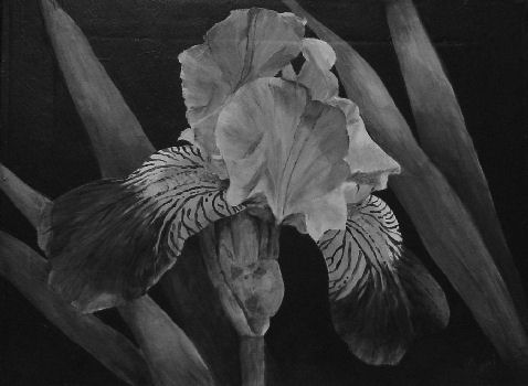 | Below is a reference photo I took of an iris that I used to paint the acrylic painting in the next row. To the right of each photo is the black and white version . It's easy to see in the black and white comparison how I lost the highlights in the painting... |
